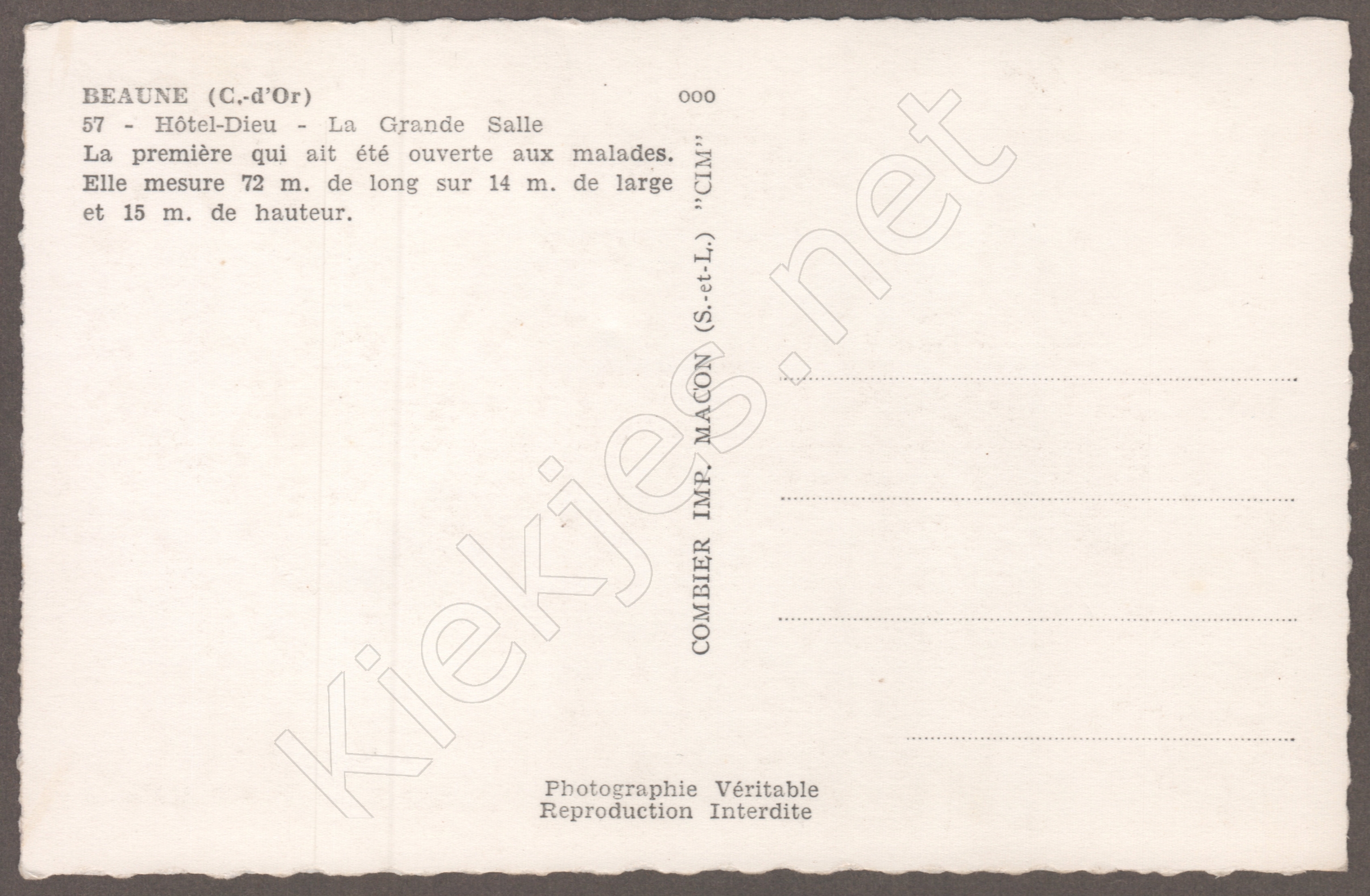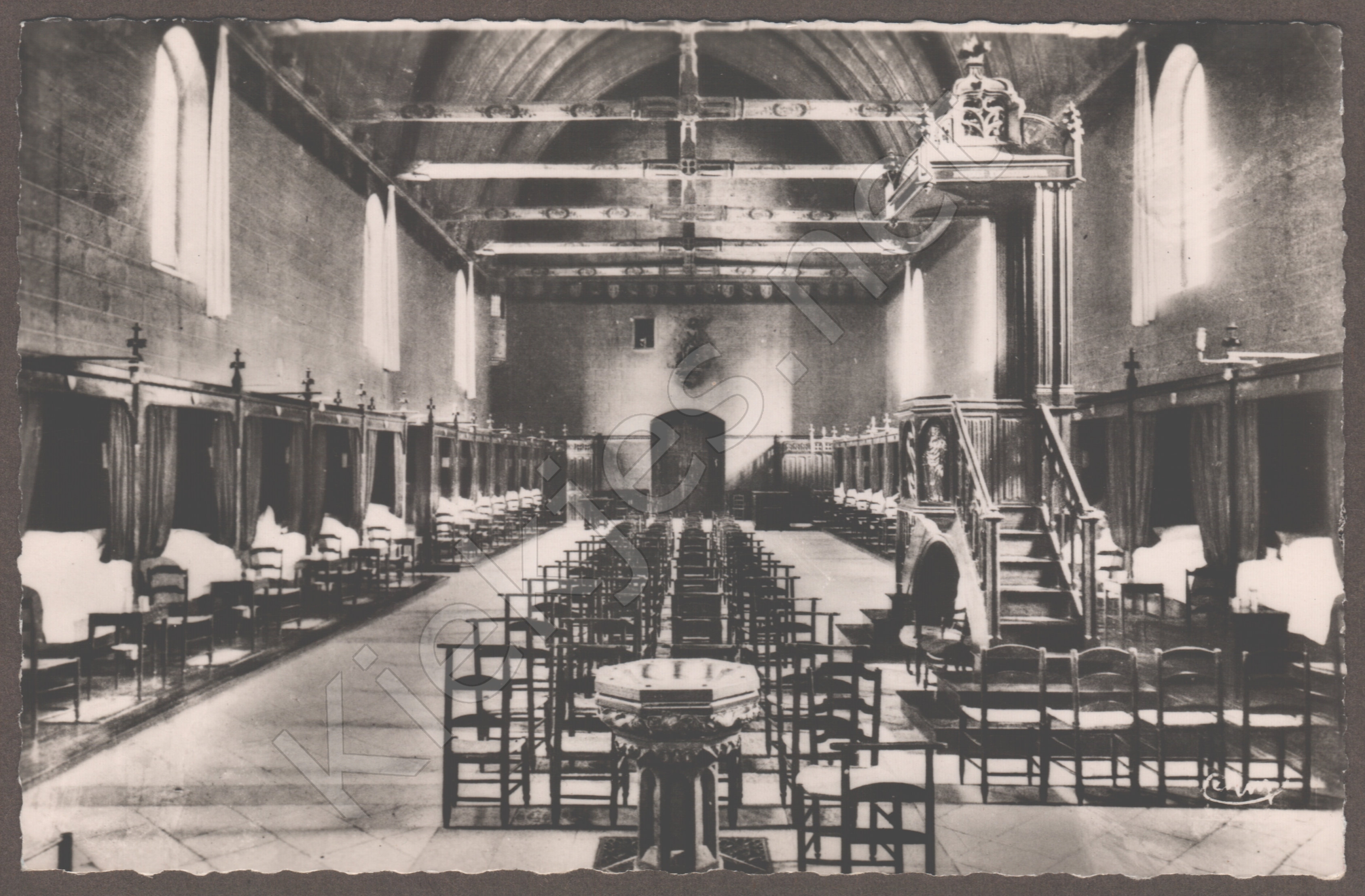 Hôtel-Dieu - La Grande Salle La première qui ait été ouverte aux malades. Elle mesure 72 m. de long sur 14 m. de large et 15 m. de hauteur.