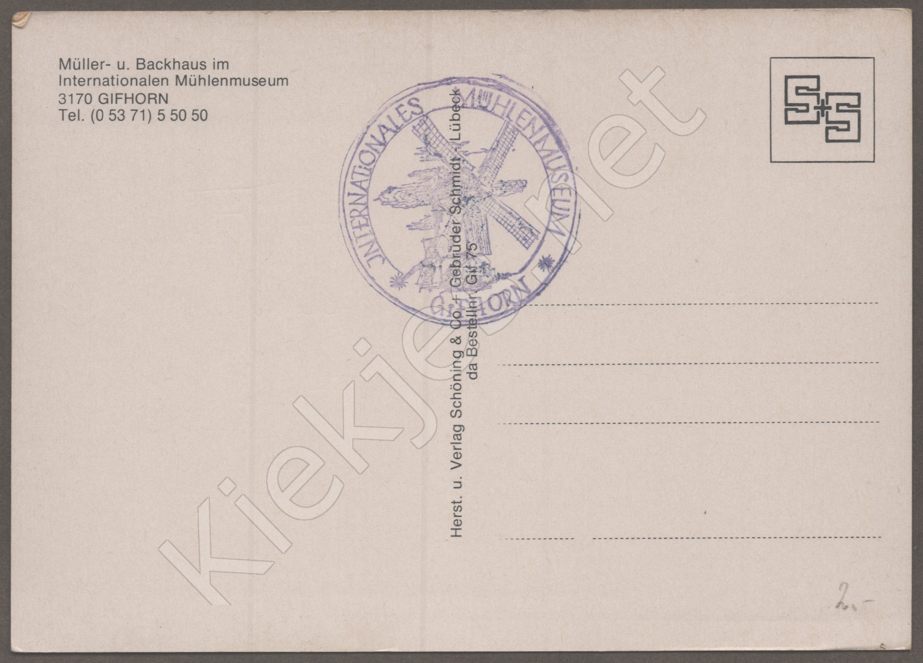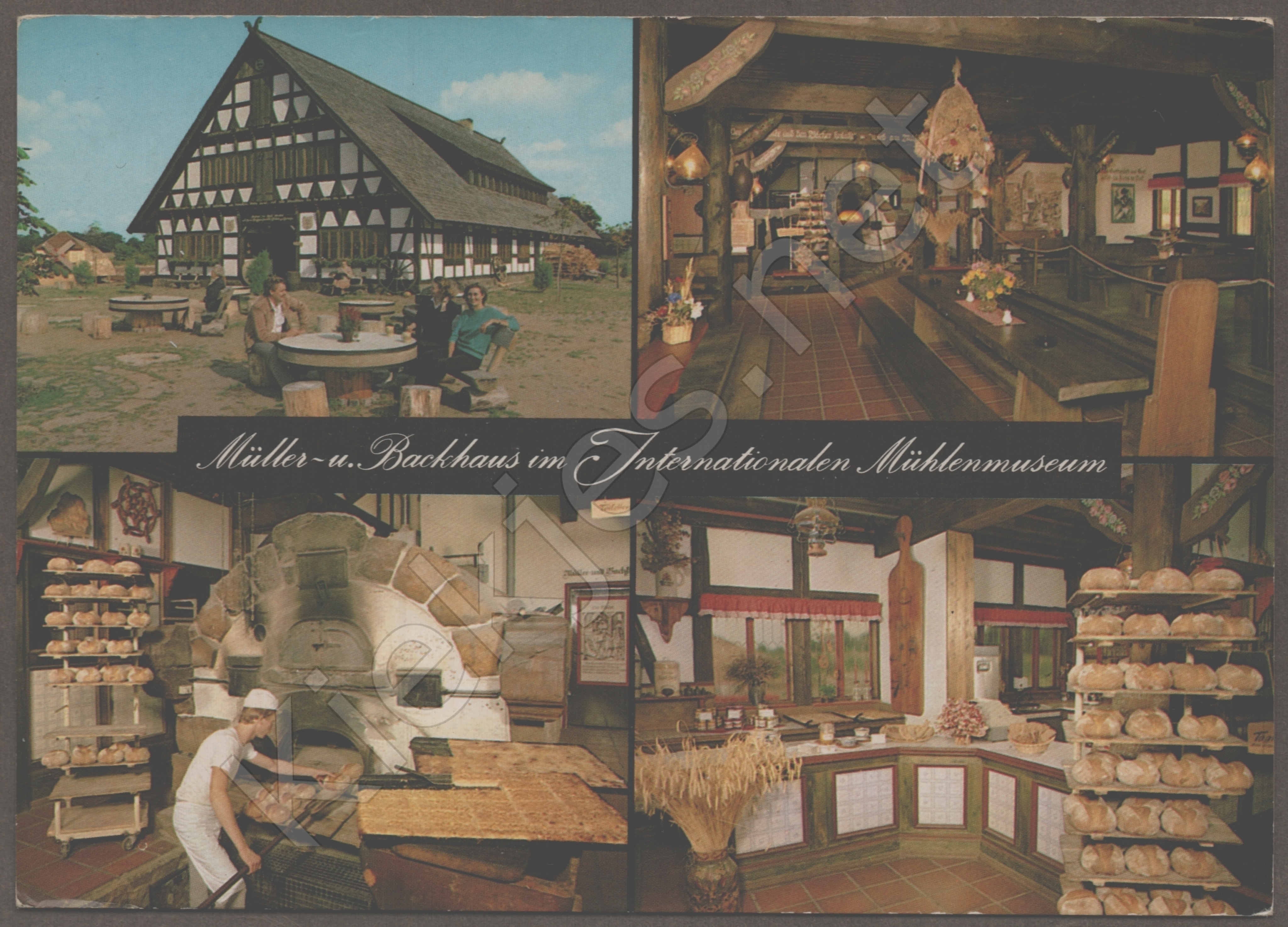 Samengestelde kaart met 4 foto's. M?ller- u. Backhaus im Internationalen M?hlenmuseum 3170 GIFHORN Tel. (0 53 71) 5 50 50