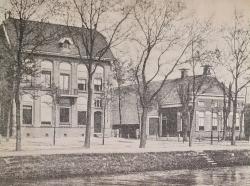 Stadskanaal: het Post- en Telegraafkantoor in 1914. Thans is hier een sport-zaak gevestigd. Rechts staat de boerderij van de familie Oldenburger, die thans bewoond wordt door L. Meertens. Foto van de kalender OUD-STADSKANAAL 1982 (januari)